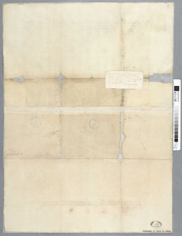 Registre des pièces d'archives tirées de leur fonds d'origine et placées en raison de leur format, dans la série factice dite de "grands documents". Par décision du 8 mars 1976, les plans retirés des séries officielles sont rangés parmi les grands documents.