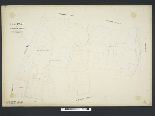 - pour Rouffach, les matrices cadastrales de 1824 à 1853 (3 P 1452/1-5) correspondent au plan de 1824 (3 P 557), celles de 1853 à 1903 (3 P 1452/6-18) au plan de 1852 (3 P 845-847)