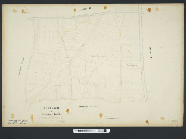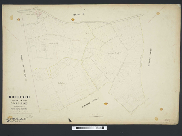 - pour Rouffach, les matrices cadastrales de 1824 à 1853 (3 P 1452/1-5) correspondent au plan de 1824 (3 P 557), celles de 1853 à 1903 (3 P 1452/6-18) au plan de 1852 (3 P 845-847)