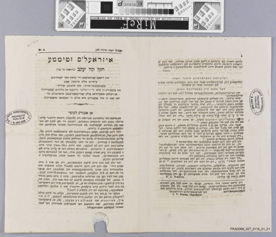 Contient entre autres: le numéro 1 de La Voix d'Israël (1864), deux exemplaires du numéro du 15 octobre 1864 du Der Wegweiser, le numéro du 9 janvier 1868 du Journal du canton de Cernay et des bains de Wattwiller, les numéros des 5 et 12 décembre1868 Der elsässische Volksbote .