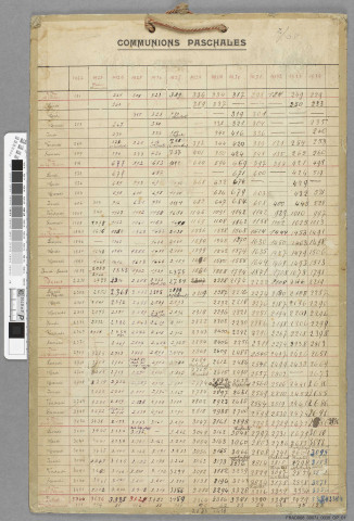 Tableau des communions pascales de Saint-Thiébaut de Thann
