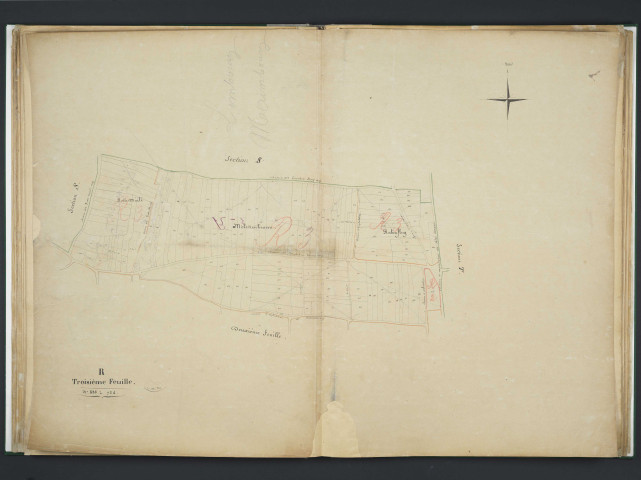 - pour Fellering, le plan correspondant aux matrices cadastrales de 1825 à 1848 (3 P 1064/1-3)n'existe plus ; les matrices cadastrales de 1849 à 1903 (3 P 1064/3-5) correspondent au plan de 1845 (3 P 854)