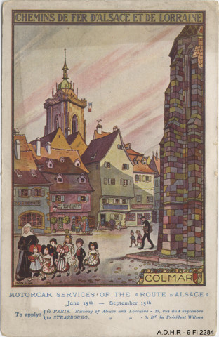 Colmar, la collégiale et groupe d'enfants (dessin Hansi)